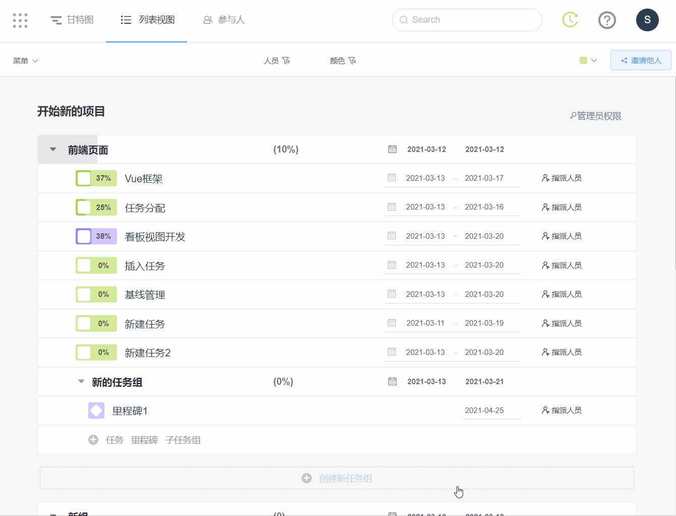 任务/里程碑分配人员